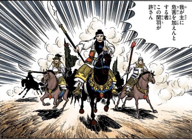 | 周瑜の戦闘準備 甘寧:北岸から烏林 太史慈:合淝へ 呂蒙:烏林へ 凌統:夷陵の境 董襲:漢川方面 潘璋:漢川方面 黄蓋、周瑜。程普 丁奉、徐盛 孔明の戦闘準備 趙雲:烏林へ 張飛:夷陵へ 糜竺、糜芳、劉邦 江岸へ 劉琦:武昌へ 関羽:華容山へ 劉備、孔明 ![]() 孔明の考え | 孔明の考え 関羽の心根に、 昔受けた曹操の 恩に対して、 今もまだ報じたい 情があるなら、 その人情を尽く させてやるも 良いではあり ませんか | ||