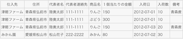 第一正規化:仕入先と入荷日・数量等のデータを正規化