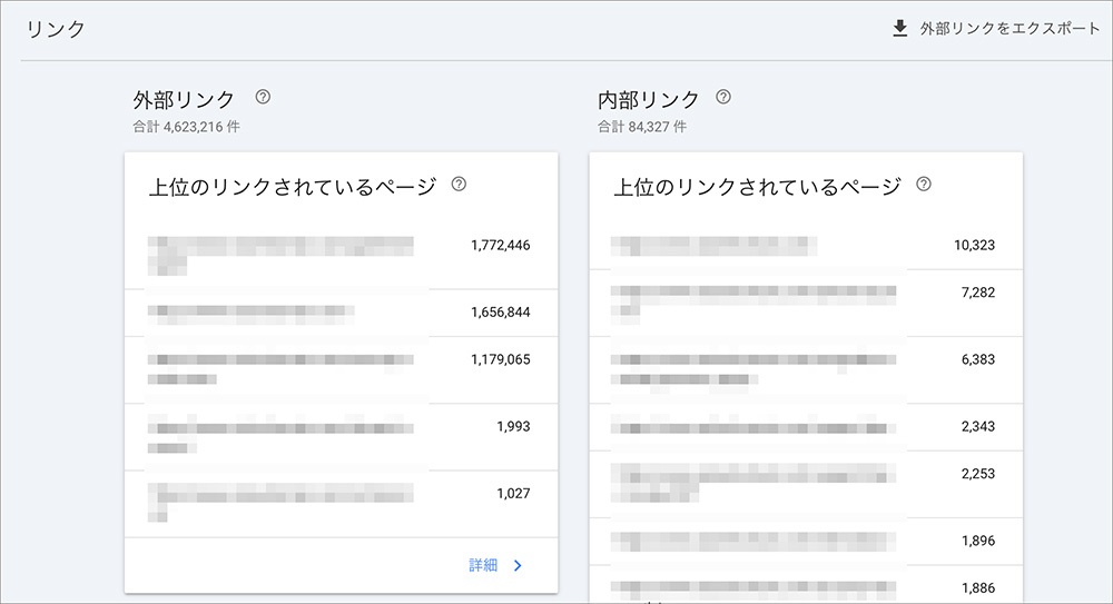 | リンクされているページ | どのページがどのくらい外部からリンクされているか |