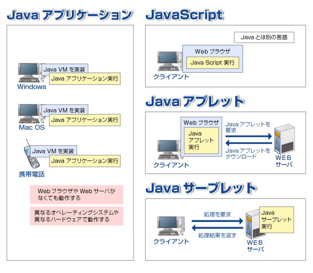 ブラウザ上では無く、サーバー上で動きアプレットのような制限を受けない