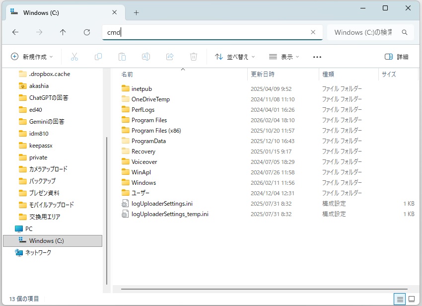 アドレスバーに「cmd」と入力してEnterキーを押下する